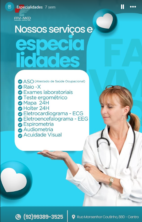 Desde 2017, a FAV MED oferece um atendimento completo e humanizado em saúde, com especialização em Exames Clínicos e Medicina Ocupacional.